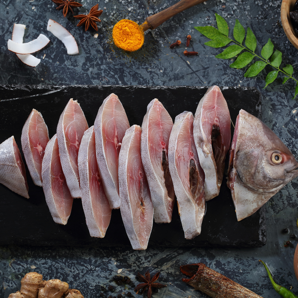 Black Pomfret with Head Curry Cut
